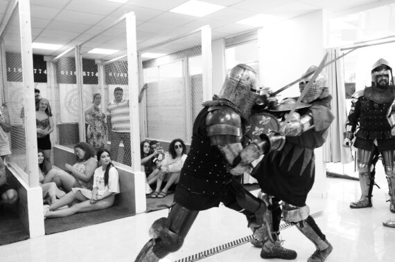 Contacté con el equipo de mi comunidad, Valentia Victrix y vinieron junto al equipo de Albacete, Caballeros de los Llanos. Ofrecieron unos maravillosos asaltos y explicaron a los asombrados asistentes en qué consistía este apasionante deporte.