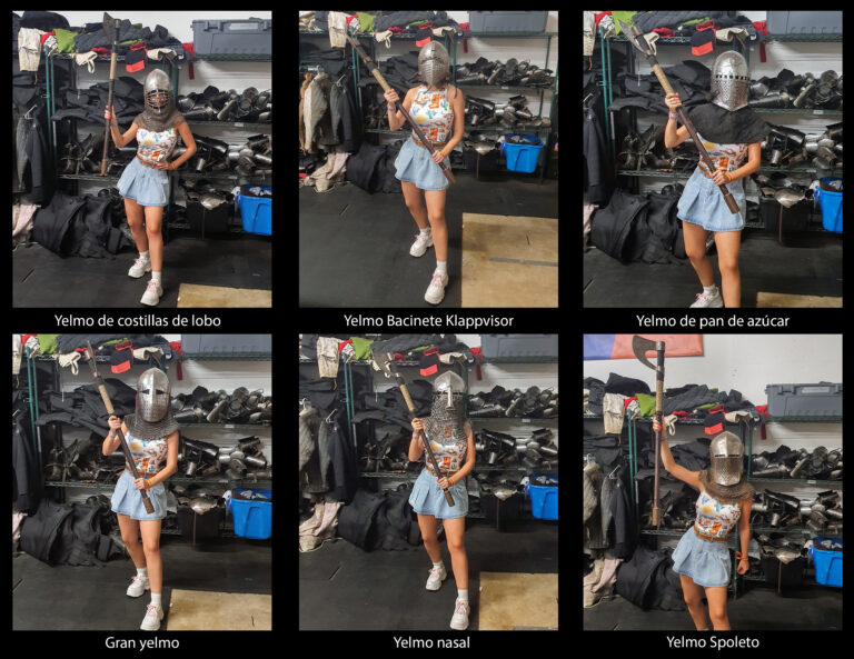 En el Mundial conocí a miembros de Dallas Warlords y me invitaron a su entrenamiento, aproveché para tomarme algunas fotos con los diferentes yelmos que utilizan en las batallas e ir cogiendo ideas para mis proyectos futuros…